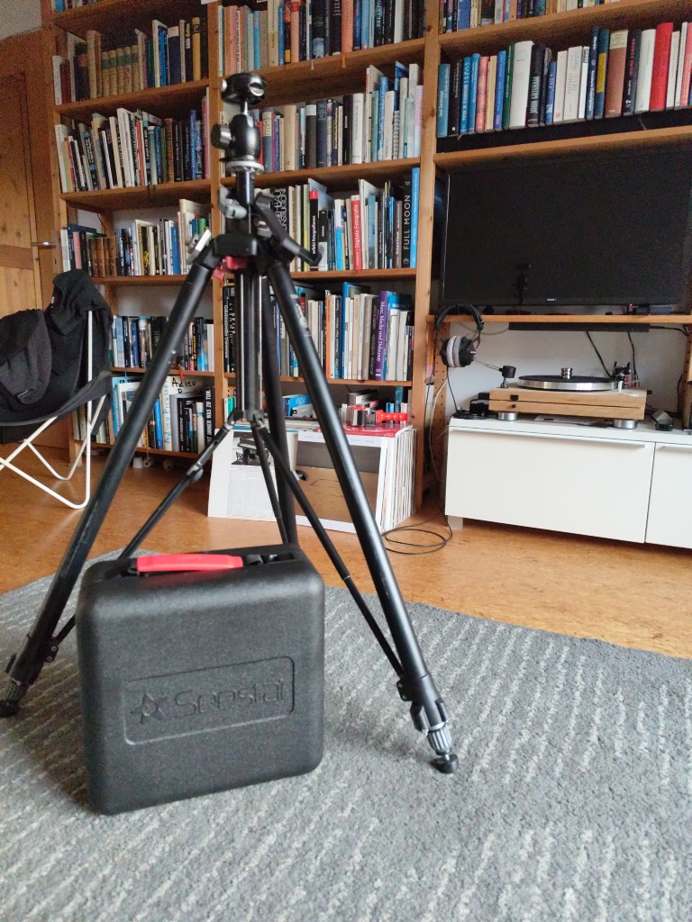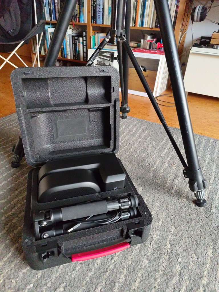 Transportkoffer, montiert auf Fotostativ und initialisiert…