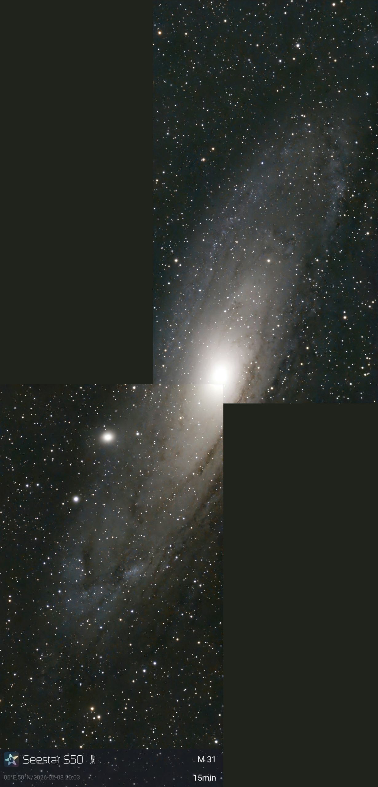 Das ZWO Seestar S50 ist ein kompaktes, vollautomatisches 50-mm-Apo-Triplet-Smart-Teleskop (250 mm Brennweite, f/5) für die Astrofotografie. Es nutzt den Sony IMX462 Sensor (1920×1080) für Aufnahmen von Nebeln, Galaxien, Mond und Sonne (mit entspr. Filter). Das 3 kg schwere Gerät bietet 64 GB Speicher, ca. 6 Stunden Akkulaufzeit, WLAN/Bluetooth und App-Steuerung (ähnlich ASIAIR)
